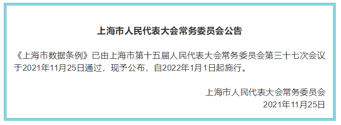 公告|《上海市數(shù)據(jù)條例》全文公布
