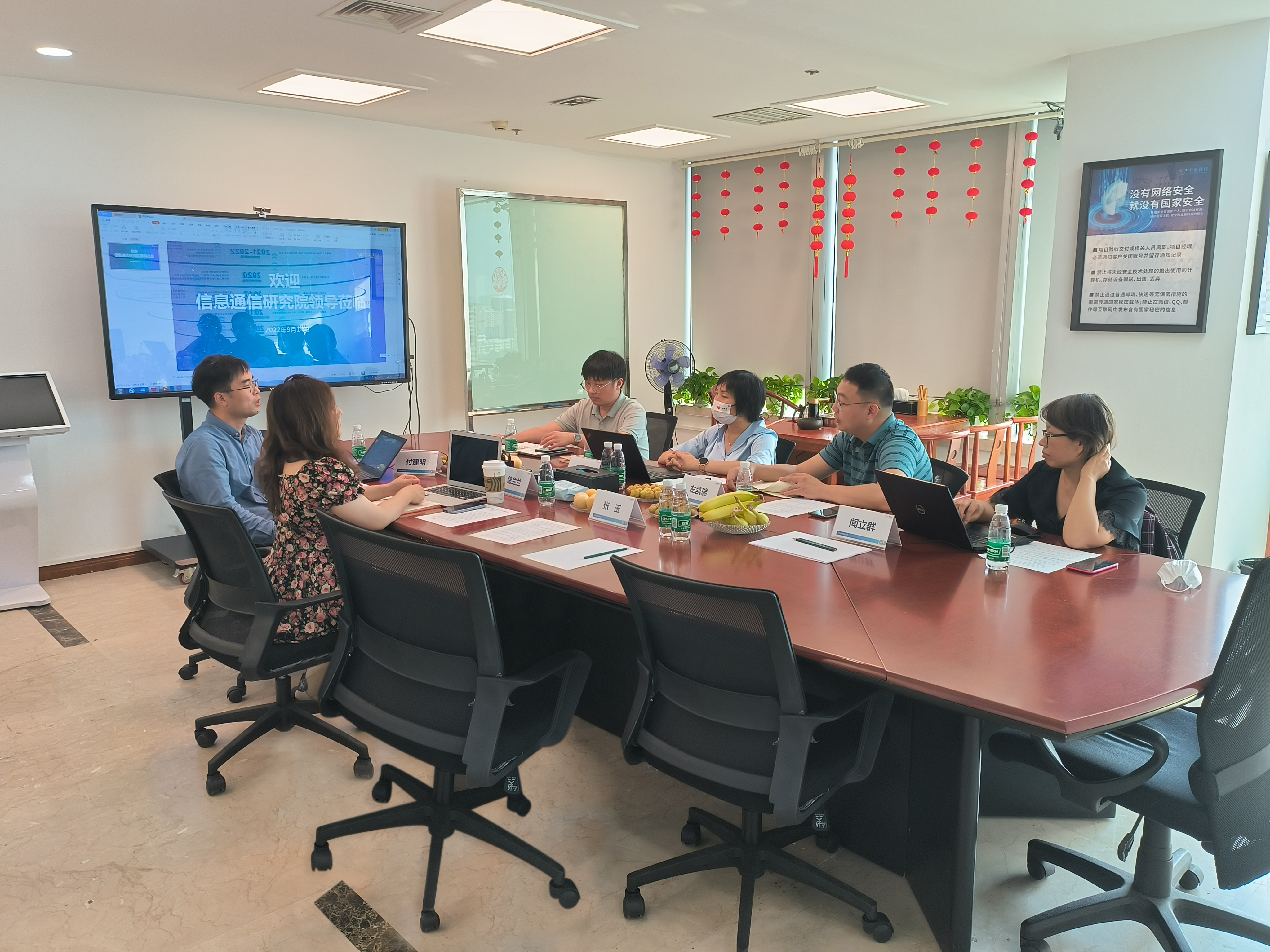 中國信息通信研究院政策與經濟研究所副總工韋柳融、戰略研究部主任左鎧瑞、高級工程師聞立群、工程師饒偉強等出席調研。中奧科技北京研究院相關負責人付建明、儲蘭蘭接待交流。