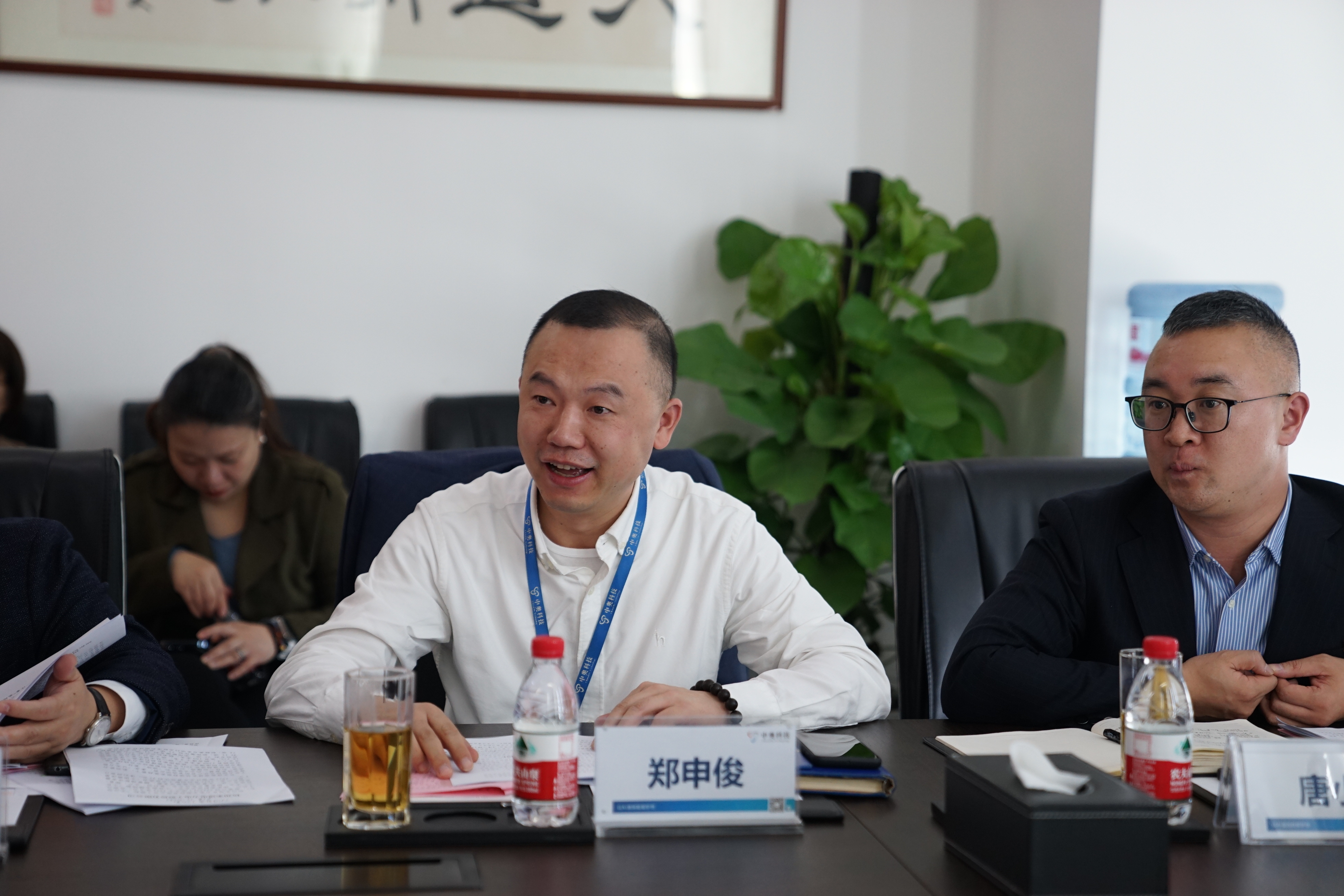 中奧科技創始人鄭申俊向調研組介紹了公司成立以來,始終致力于服務政務數字化轉型,通過自主研發的六大核心平臺體系,深度參與了公安、政法等領域數改的重大項目,推動了一批具有浙江辨識度的標志性成果在全國的應用落地。